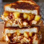 A fun twist on classic comfort food, this BBQ Chicken Pineapple Grilled Cheese combines savory shredded chicken with tangy barbecue sauce, sweet pineapple, and creamy cheddar cheese. Perfect for lunch or dinner!