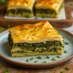 An easy and delicious spinach pie with layers of flaky pastry and savory filling, perfect for any meal.