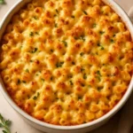 This dish combines boiled macaroni, a rich cheese sauce, and spices, baked to perfection for a crispy top.