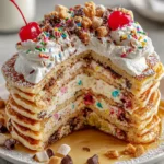 Chaos Cake Pancake Stack is a fun and delicious way to start your day. It combines the fluffy goodness of pancakes with the delightful toppings of a cake. This recipe is great for birthdays, special occasions, or just when you want to treat yourself. The colorful sprinkles and tasty toppings make it a visual and flavorful treat that both kids and adults will love. Plus, it’s easy to whip up in no time!