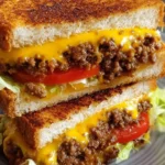 A delightful fusion of cheeseburgers and grilled cheese sandwiches, featuring juicy beef and gooey cheese.