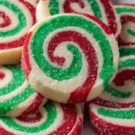 Delightful Christmas Swirl Pinwheel Cookies with vibrant red and green colors and a buttery flavor, perfect for holiday celebrations.