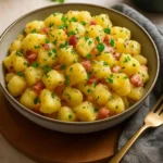 This classic German potato salad is warm, tangy, and full of savory bacon flavor while staying lighter than a mayo-based side. I’ve made variations for family gatherings and weeknight dinners, and it reliably disappears fast — a real crowd-pleaser. If you enjoy comforting, simple sides, check out this Comforting Vegetable Barley Soup recipe I often serve alongside it.
