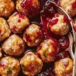 Savory turkey meatballs glazed with a sweet and tangy cranberry sauce, perfect for a cozy dinner with family and friends.