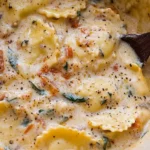 Stir in the ravioli and sun-dried tomatoes. Simmer for 5–6 minutes (or according to the package instructions) until the ravioli is cooked through and tender.