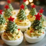 A festive twist on classic deviled eggs, shaped like Christmas trees, perfect for holiday gatherings.
