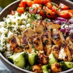 Vibrant and flavorful Greek Chicken Bowls with succulent marinated chicken, fresh veggies, and creamy tzatziki, perfect for weeknight dinners or gatherings.