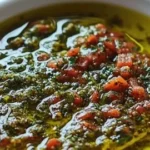 To create this delicious dip, you’ll combine high-quality extra virgin olive oil with fresh herbs like parsley and basil, minced garlic, a squeeze of lemon juice, and flavorings such as salt and pepper. Simply whisk everything together until it’s well blended. You can expect a vibrant green color and a fresh aroma as you mix.