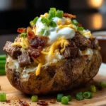 Flavor Explosion: The combination of steak, cheese, sour cream, and bacon creates a mouthwatering taste that’s hard to resist. Each bite is packed with savory goodness.