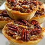 These mini pecan pies are buttery, nutty bites of classic Southern pie in a convenient small size, featuring a crispy crust and gooey, caramel-like filling studded with pecans.