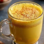 A vibrant drink blending turmeric, ginger, and coconut milk, packed with wellness-boosting properties for a refreshing start to your day.