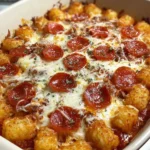 Pepperoni Pizza Tater Tot Casserole is a fun and delicious dish that combines two beloved favorites: pizza and tater tots. It’s perfect for a family dinner, a potluck, or even just a cozy night in. The combination of crispy tater tots, savory pepperoni, and gooey cheese creates a mouthwatering meal that everyone will enjoy. Plus, it’s easy to make and can be customized with various toppings to suit your tastes!