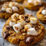 Warm and gooey Pumpkin S’mores Cookies combine pumpkin spice with the charm of s’mores for a comforting treat.