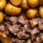 Before you dive in, let me tell you a few hard-won cooking lessons! Number one: don’t crowd the pan when searing. My first time, things got weird and gray. Let the beef get that brown goodness. Number two—use a waxy potato like Yukon Gold. Russets get weird and mushy sometimes. Also, if you want a more crispy finish on your potatoes (and yes, you do), broil just the potatoes for 3-5 mins after slow cooking while the beef rests, then mix them back with the beef and garlic butter.