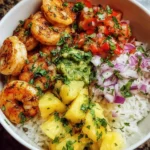 Shrimp & Rice Bowl with Pineapple Salsa is a delightful and colorful dish that brings together fresh ingredients and bold flavors. It’s perfect for a quick weeknight dinner or a weekend gathering. The shrimp are seasoned to perfection, the rice is fluffy, and the pineapple salsa adds a refreshing twist. Plus, it’s a great way to enjoy seafood and fruit in one bowl!