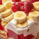 A delightful no-bake dessert featuring layers of creamy pudding, fresh strawberries, and ripe bananas, perfect for any occasion.