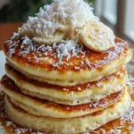 Delightful and fluffy pancakes infused with tropical coconut flavor, perfect for a special breakfast or brunch.